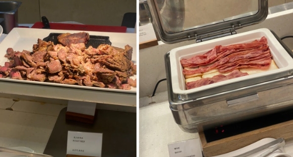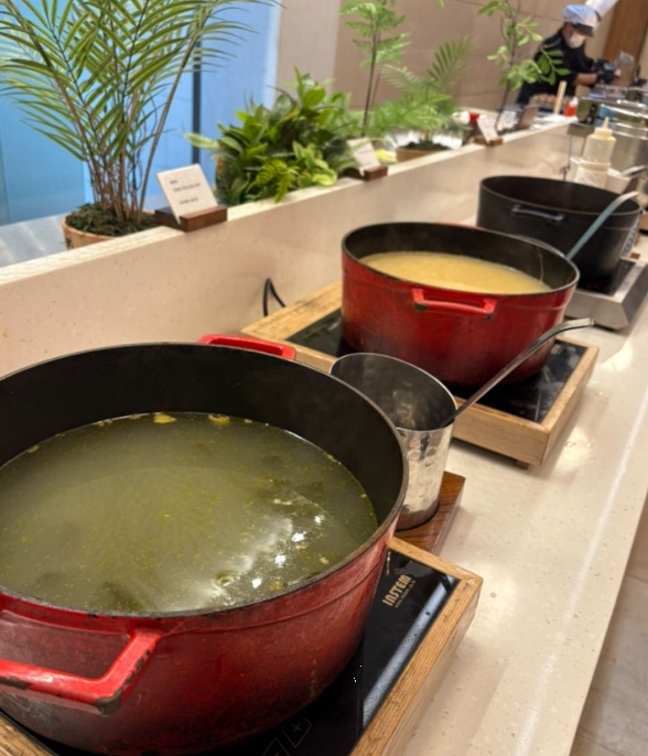 무엇보다 인상 깊었던 건 쌀국수 코너였습니다. 원하는 재료를 담아 셰프에게 건네면, 즉석에서 따뜻한 국물에 조리해 바로 제공해주시는데, 아침에 속을 달래기에 이만한 메뉴가 없더라고요. 향긋한 고수와 숙주, 맑은 육수가 조화를 이뤄 여행 중 피로했던 속을 편안하게 감싸주는 느낌이었습니다.