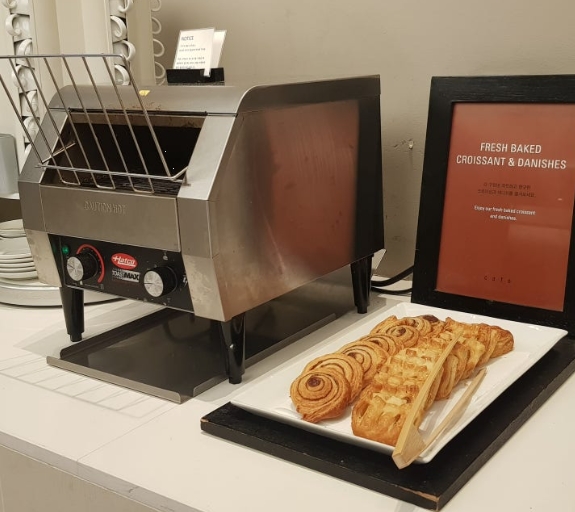 그릴에 구운 소시지와 베이컨은 아침 식사에서 빠질 수 없는 클래식한 메뉴죠. 신라스테이 구로의 소시지는 잡내 없이 촉촉하고 담백해서 스크램블 에그와 환상의 궁합을 이뤘고, 베이컨은 짜지 않고 고소해서 부담스럽지 않았습니다.