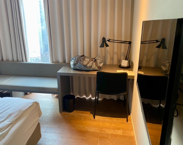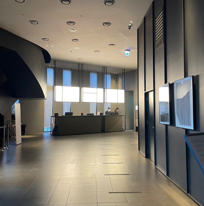 체크인 카운터로 이동하기 전에, 로비 공간에서 편안히 대기할 수 있으며, 익스프레스 체크아웃 서비스도 제공되어 빠른 퇴실이 가능합니다. 로비에는 업무를 볼 수 있는 테이블 공간이 마련되어 있어, 카페처럼 편리하게 사용할 수 있었습니다.