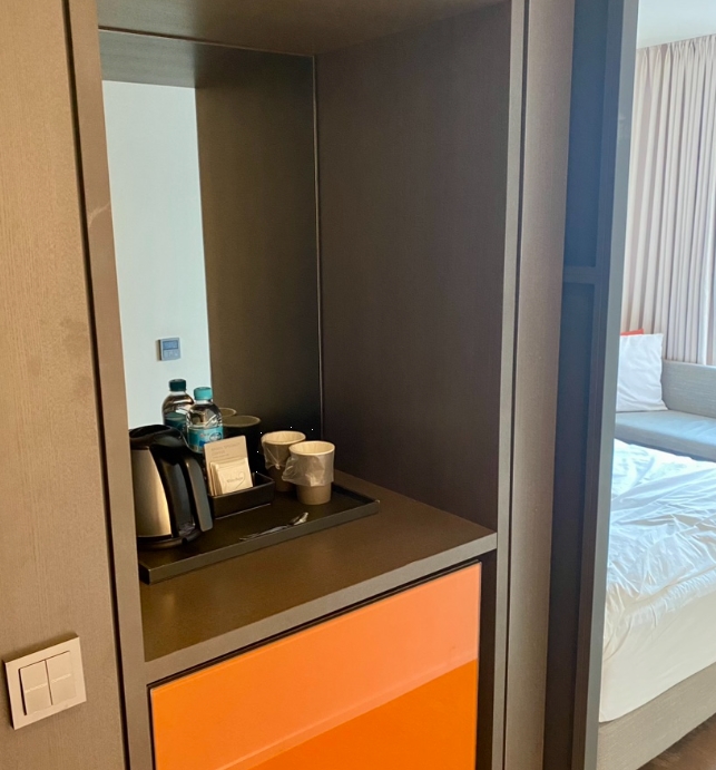 객실에 들어서면 입구 쪽에 다양한 기본 시설이 구비된 코너가 마련되어 있습니다.