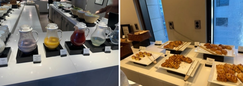 조식 메뉴는 다양하게 구성되어 있으며, 전반적으로 맛과 품질이 높았습니다. 특히 라이브 스테이션에서는 쌀국수와 계란 요리를 즉석에서 만들어주어 신선한 맛을 즐길 수 있었습니다. 베이커리류도 맛있어 만족스러운 식사를 할 수 있었습니다. 다양한 음료와 디저트도 준비되어 있어 아침 식사를 풍성하게 마무리할 수 있었습니다.
