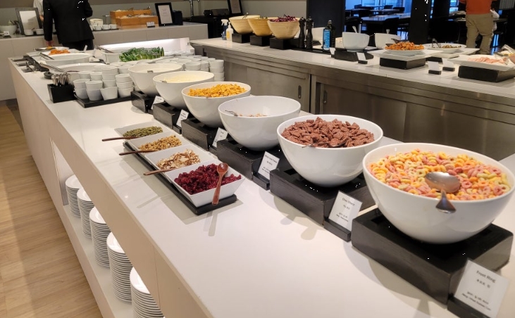 옆에는 우유, 시리얼, 그래놀라 코너도 따로 준비되어 있었는데, 아이를 동반한 가족들에게 특히 인기가 많아 보였습니다.