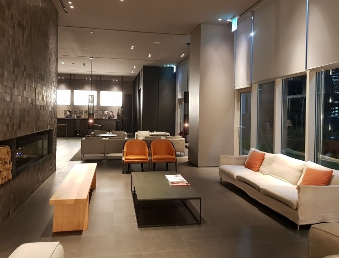 호텔 로비는 8층에 위치해 있어 엘리베이터를 타고 올라가야 합니다. 체크인은 오후 3시부터 가능하며, 체크아웃은 정오 12시입니다. 로비 공간은 고급스러우면서도 미니멀한 분위기로, 조용하고 깔끔해서 첫인상부터 만족스러웠습니다.