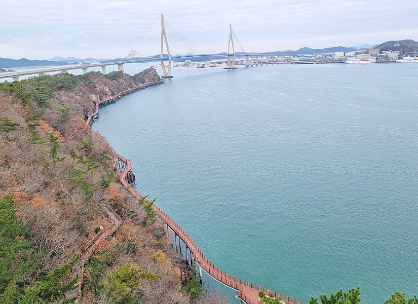 케이블카의 종점인 고하도 스테이션에 도착하면 또 다른 즐길 거리가 펼쳐집니다. 해상 데크길을 따라 걷다 보면, 바다 위에 떠 있는 듯한 기분으로 산책을 즐길 수 있어요. 특히 용머리 해안 전망이 예술이에요.
