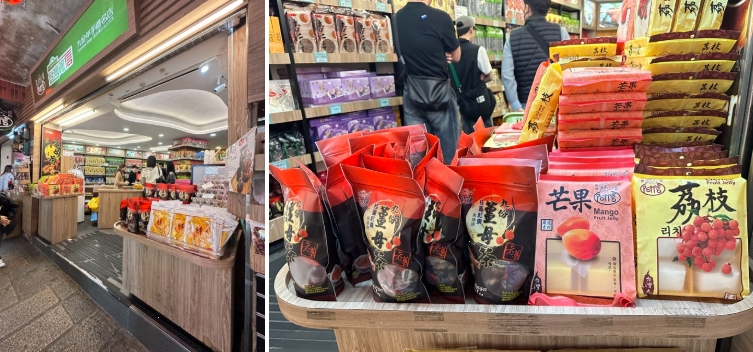 지우펀에서의 또 다른 즐거움은 바로 쇼핑이었습니다. 좁은 골목마다 개성 넘치는 상점들이 늘어서 있었고, 시식도 자유롭게 할 수 있어 고르기 전 부담 없이 맛을 볼 수 있었어요.