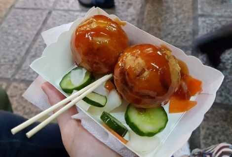 가이드님이 추천해주신 새우 완자 튀김은 정말 맛있었어요. 갓 튀겨낸 완자는 겉은 바삭하고 속은 촉촉했는데, 안에 들어간 야채 덕분에 느끼하지 않고 깔끔한 맛이었어요.