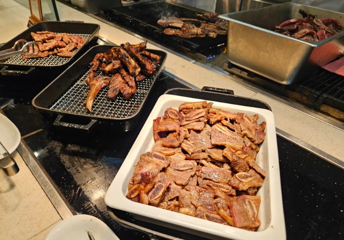 그리고 빼놓을 수 없는 게 디저트 코너죠. 크림브륄레는 겉은 바삭하고 속은 부드러워 입안에서 사르르 녹았고, 치즈케이크도 꾸덕꾸덕하면서 진한 맛이 나서 커피 한 잔과 함께 먹으니 딱이었어요.