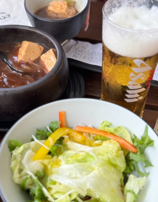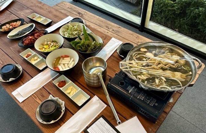 예약제라 미리 준비된 숯불과 세팅 덕분에 도착하자마자 바로 고기를 구워 먹을 수 있었고, 덕분에 번거롭지 않게 여유로운 식사를 즐길 수 있었어요.