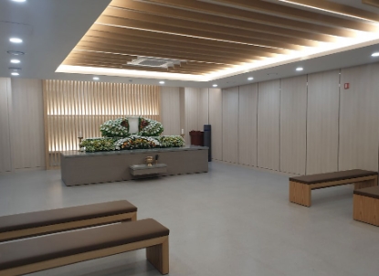 저희는 2층에 위치한 빈소를 사용했는데, 내부가 매우 청결하고 조명이 은은하여 차분한 분위기를 느낄 수 있었습니다. 많은 조문객이 방문했음에도 불구하고 복도와 대기실이 넓어 붐비는 느낌 없이 여유 있게 조문을 치를 수 있었습니다.