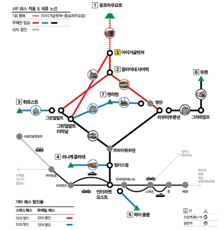 융프라우 VIP 패스는 인터라켄을 중심으로 융프라우요흐, 그린델발트, 피르스트 등 주요 관광지를 무제한으로 이용할 수 있는 교통 패스예요. 특히 융프라우요흐까지 오르는 열차는 요금이 비싸기로 유명한데, 이 패스를 사용하면 최대 50% 이상 절약이 가능합니다.