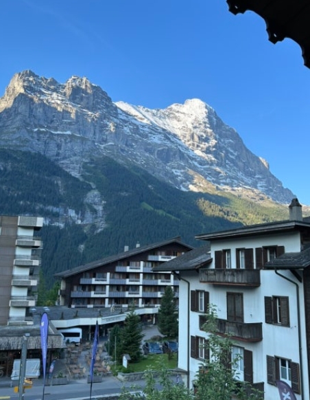 이 숙소를 추천하는 가장 큰 이유 중 하나가 바로 뷰예요. 창문을 열면 바로 눈앞에 펼쳐지는 아이거 북벽! 마치 한 폭의 그림 같은 풍경을 매일 아침, 저녁마다 감상할 수 있었어요. 엄마는 자연 풍경뿐 아니라 마을 전경까지 함께 볼 수 있는 이 뷰가 훨씬 좋다고 하셨고, 저 역시 해질녘 노을과 함께한 그 순간들을 아직도 잊지 못해요.