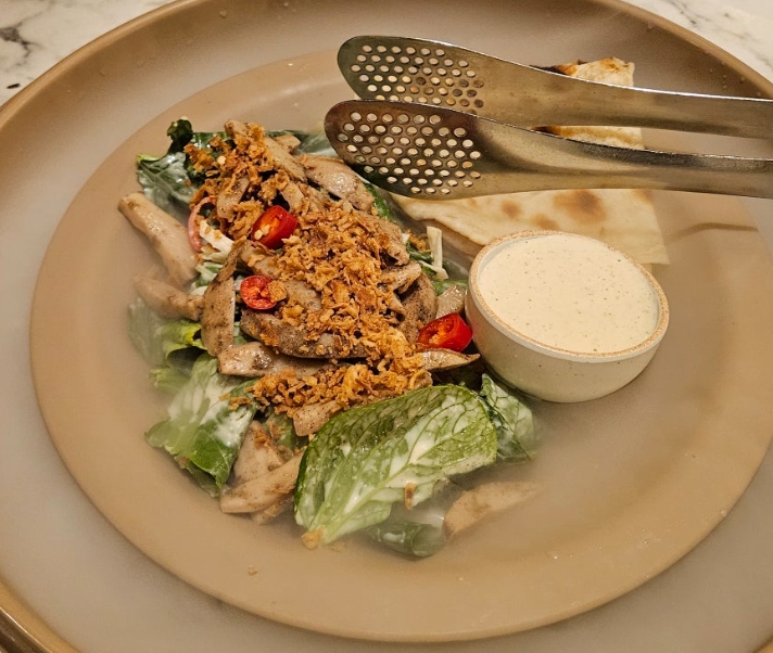 그다음에 먹은 ‘머쉬룸 스노윙 브레드’는 기대 이상이었어요. 구운 난에 상큼한 샐러드를 싸먹는 독특한 메뉴였는데, 소스와의 조화가 정말 예술이었어요. 사실 메인 커리보다도 이 브레드가 더 기억에 남을 정도였답니다. 입에서 고소함과 상큼함이 번갈아가며 퍼지는데 자꾸 손이 가더라고요.