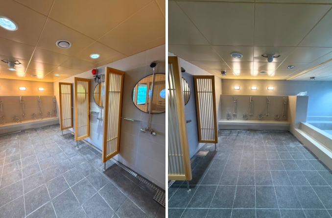 남녀 구분된 대형 대욕장에서는 바다를 바라보며 목욕을 즐길 수 있습니다. 일본 료칸을 연상시키는 분위기에서 쾌적한 사우나 시설도 함께 이용할 수 있습니다.
