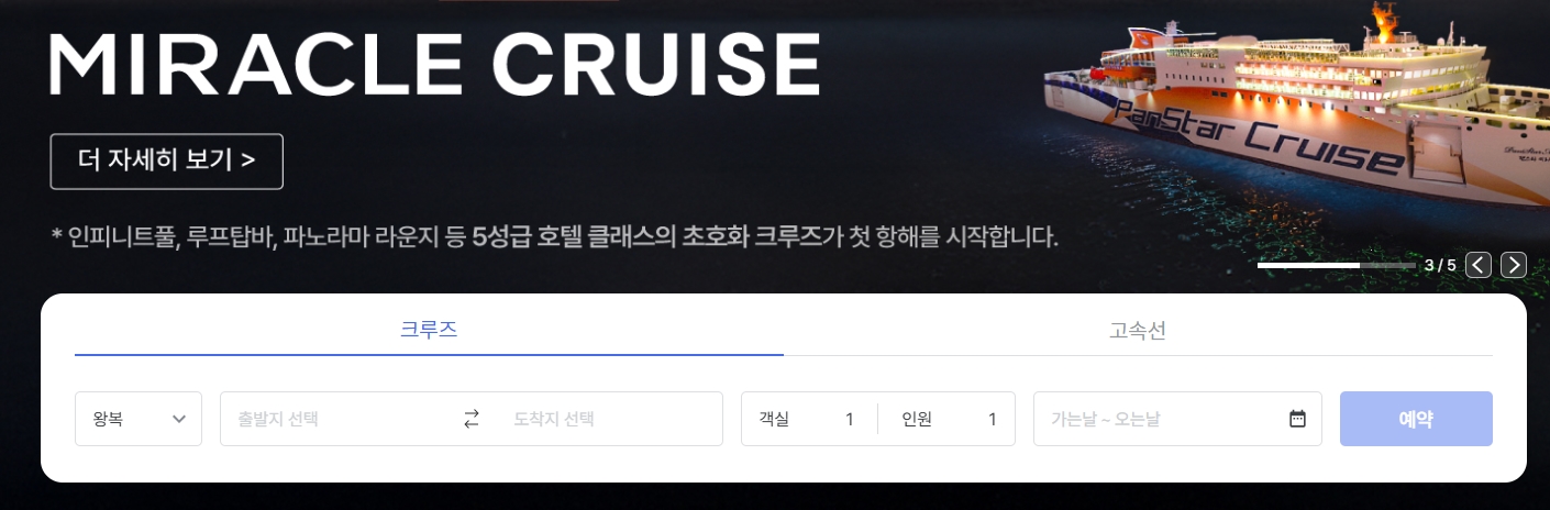 팬스타 미라클호 예약은 팬스타 공식 홈페이지 또는 여러 여행 플랫폼(예: 클룩, 트립닷컴 등)을 통해 가능합니다.
