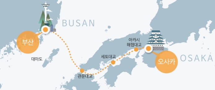 일요일, 화요일: 오후 5시 출항 → 익일 오전 10시 도착