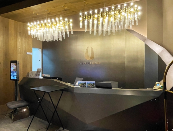 호텔에 도착하자마자 가장 먼저 마주한 로비 공간은 엔브릿지 호텔의 전체 분위기를 단번에 알 수 있게 해주는 첫인상이었습니다.