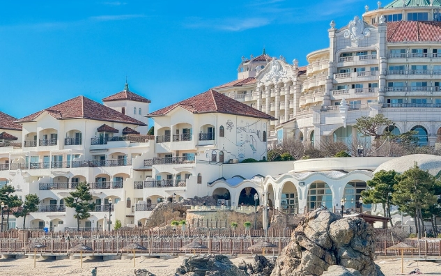 양양 쏠비치에 도착하자마자 가장 먼저 시선을 사로잡은 건 바로 리조트의 이국적인 외관이었습니다. 마치 지중해 어딘가에 도착한 듯한 기분이 들 정도로, 하얀 외벽과 넓은 창, 그리고 곳곳에 놓인 테라스들이 햇살을 받아 반짝이고 있었어요.