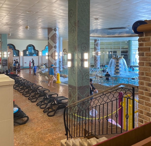 실내 미끄럼틀을 타며 노는 아이를 바라보는 동안, 어른들은 따뜻한 야외 노천탕에 몸을 담그고 바다를 감상하는 시간을 가질 수 있었어요. 이렇게 어른과 아이 모두가 만족할 수 있는 구성이 정말 마음에 들었습니다.