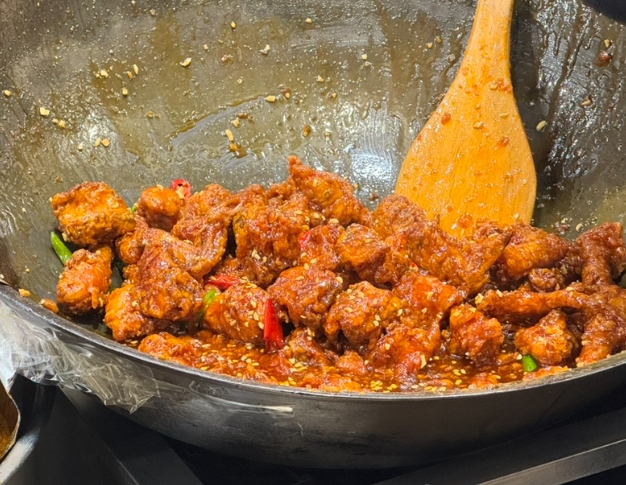 바삭한 튀김 위에 진한 양념이 코팅된 이 닭강정은 단짠단짠하면서도 살짝 매콤한 맛이 일품이었습니다.