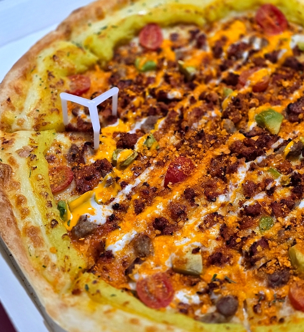 멕시칸 타코 스타일을 재현한 프리미엄 피자로, 칠리 콘 카르네, 나초, 아보카도, 샤워크림 등 다양한 재료가 듬뿍 올라가 있었어요.