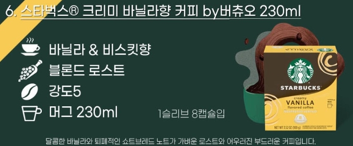 바닐라 라떼를 평소 좋아하시는 분이라면, 아마 이 캡슐 하나로 충분히 만족하실 것 같습니다.