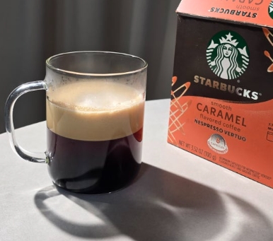 이 캡슐은 마시자마자 은은한 캐러멜 향이 퍼지며 기분이 좋아졌습니다.