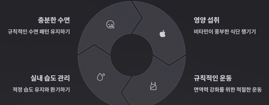 몸이 약해졌을 때 가장 먼저 무너지는 게 면역력입니다. 규칙적인 수면과 함께 따뜻한 밥, 제철 과일, 고단백 식사를 챙기려고 노력했어요. 특히 비타민 C가 풍부한 과일을 자주 섭취했습니다. 피곤하더라도 꼭 일정한 시간에 자고 일어나는 루틴을 유지했죠.