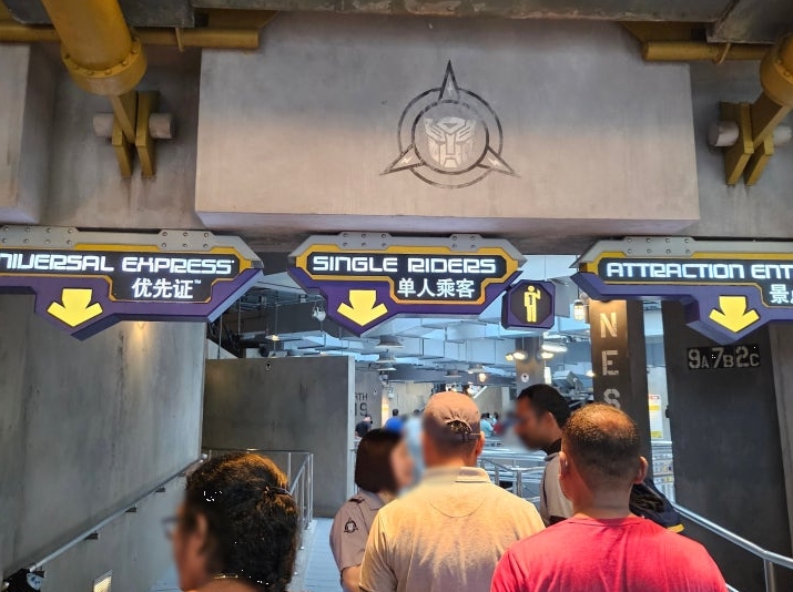 입장부터 어두운 공장 내부처럼 꾸며진 대기 공간, 트랜스포머들의 대사와 배경음악이 몰입감을 극대화해줍니다.