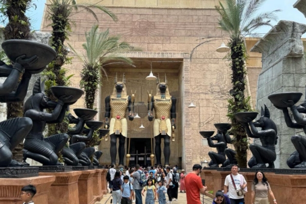 어두운 공간 속을 빠르게 질주하는 실내 롤러코스터로, 고대 이집트의 신비로운 분위기와 공포 요소가 결합된 독특한 어트랙션입니다.