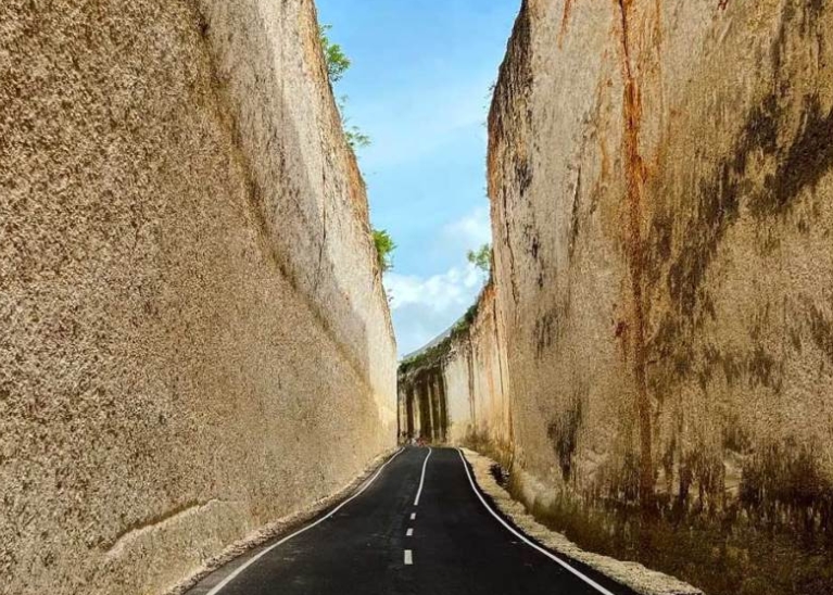 절벽을 깎아 만든 도로로, 오토바이와 함께 사진 찍기 좋은 장소예요.