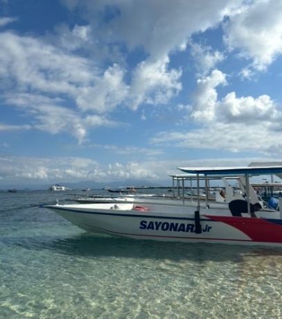 아침 일찍 전용 픽업차량으로 항구까지 이동한 뒤, 스피드보트를 타고 약 30분~1시간 정도 걸려 누사페니다에 도착했어요.
