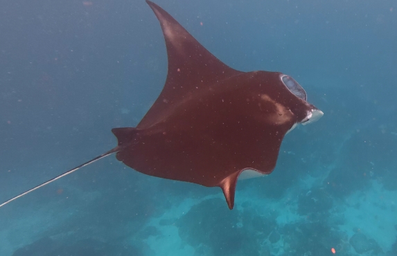 이곳은 운이 좋으면 거대한 만타가오리를 볼 수 있는 다이빙 명소예요.
