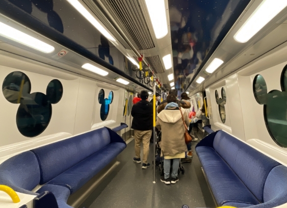 열차 간격이 짧아 기다림이 거의 없고, 디즈니 전용 열차는 미키마우스 창문과 디즈니 캐릭터 장식으로 가득해 이동 중부터 이미 디즈니 감성에 빠질 수 있어요.