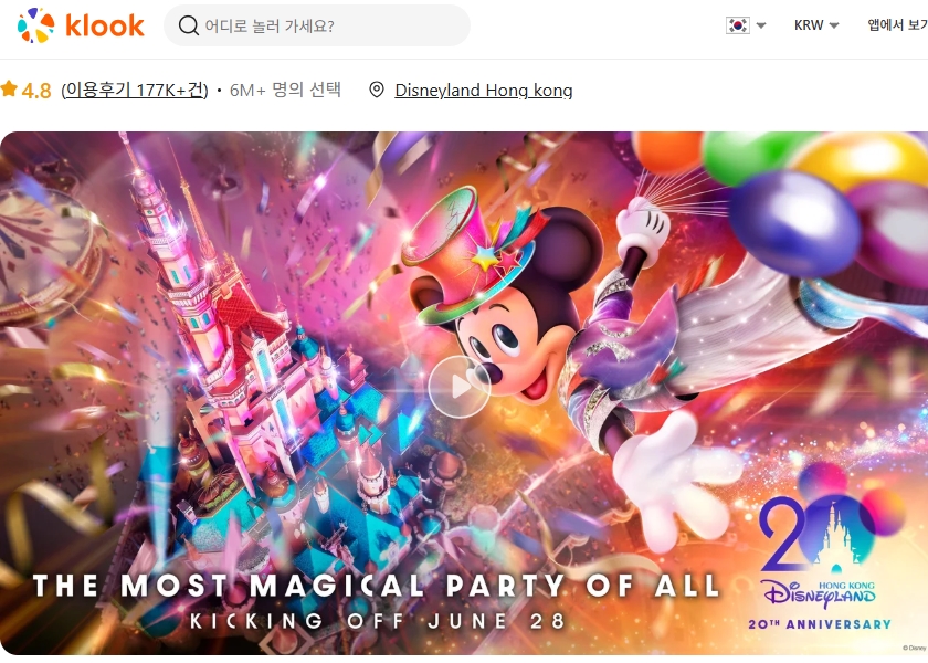 홍콩 디즈니랜드는 당일 현장 구매도 가능하지만, 입장권을 사전에 할인된 가격으로 미리 온라인에서 구매하는 것이 훨씬 유리합니다. 저는 출국 전 미리 클룩를 통해 티켓을 구매했는데, 가격도 저렴하고 QR코드만 제시하면 바로 입장 가능해서 매우 편리했습니다.