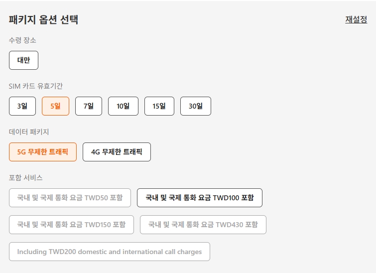 상품명: 청화텔레콤 대만 4G/5G 무제한 eSIM