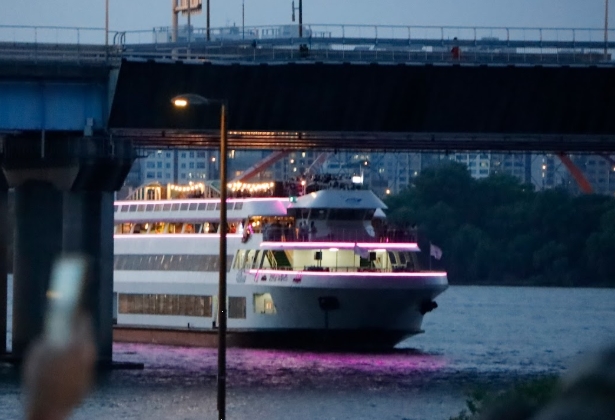 여의도 부근을 지나면서 유람선은 천천히 속도를 줄였고, 곧 선상에서 불꽃놀이가 시작되었어요.