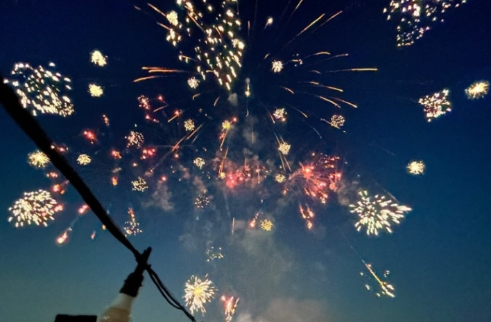여의도 부근을 지나면서 유람선은 천천히 속도를 줄였고, 곧 선상에서 불꽃놀이가 시작되었어요.