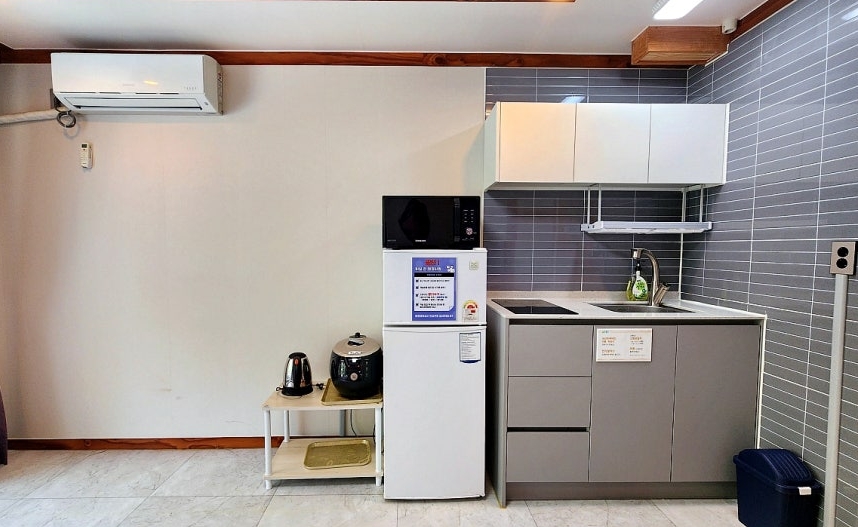 무엇보다 신축 펜션이라 그런지 모든 설비가 깨끗하고 정갈하게 유지되고 있었는데요. 주방에는 전기밥솥, 커피포트, 접시, 수저, 조리도구까지 완비되어 있어 간단한 요리를 해먹기에도 무리가 없었습니다.