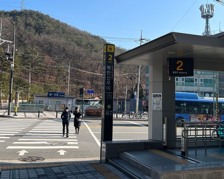 백운대탐방지원센터까지는 지하철역에서 약 2.4km 떨어져 있어 도보로 약 30분 걸립니다.