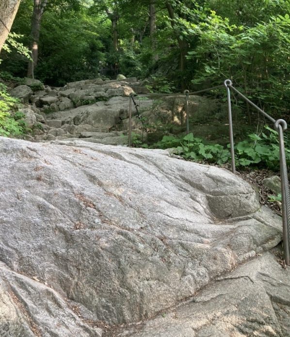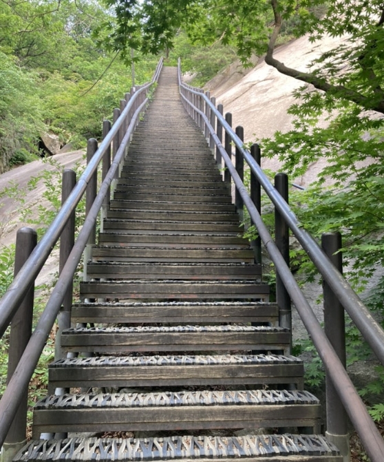 초보자인 저에겐 다소 긴장되는 구간이었지만, 미끄럼 방지 기능이 좋은 등산화를 신고 간 덕분에 안전하게 걸을 수 있었습니다.