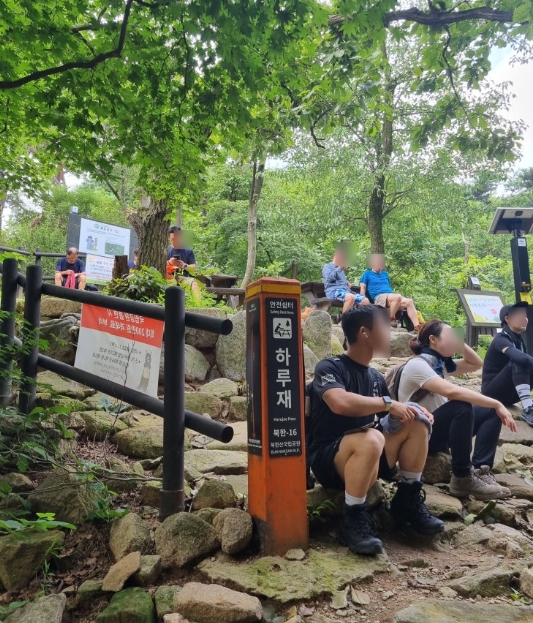 하루재는 앉아서 쉴 수 있는 벤치가 마련되어 있어 많은 분들이 잠시 휴식을 취하더라고요.