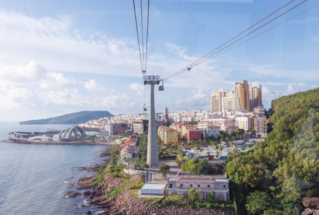 세계 최장 해상 케이블카로, 15분 동안 바다 위를 나는 듯한 기분을 느낄 수 있었어요. 바다 위에서 보는 섬 풍경은 그야말로 예술이었어요.