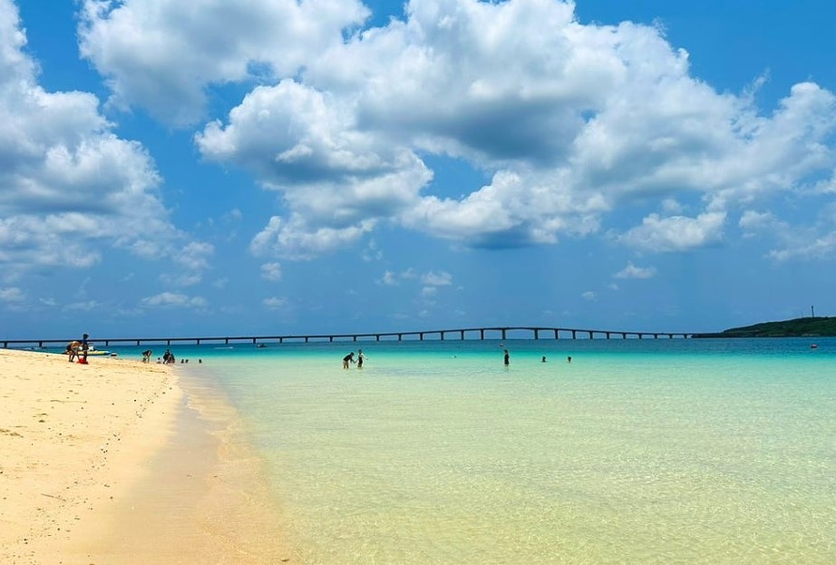 마지막으로 방문한 곳은 스나야마 해변이었습니다. 이 해변은 미야코지마에서도 가장 유명한 해변 중 하나로, 맑은 바닷물과 고운 백사장이 특징입니다. 해변에 도착하니 생각보다 사람들이 많지 않아서 한적하게 시간을 보낼 수 있었습니다.