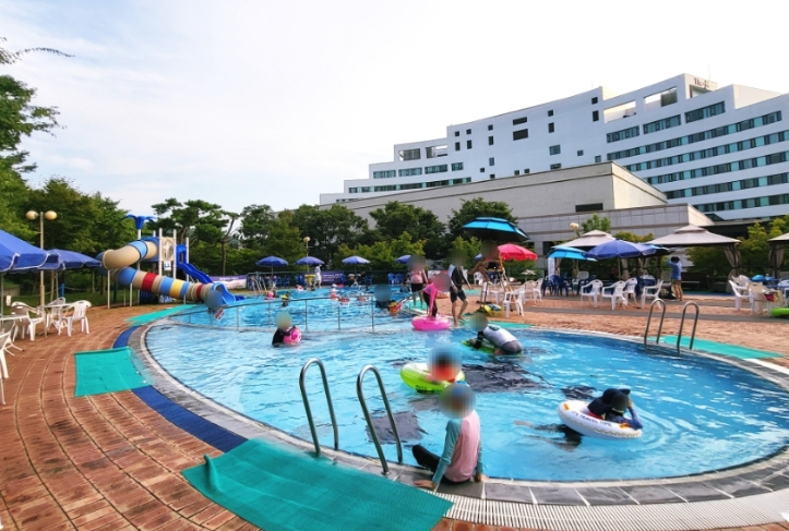 더케이호텔 경주는 부대시설도 매우 잘 갖춰져 있어요. 그중에서도 가장 먼저 이용한 건 수영장이었는데요.