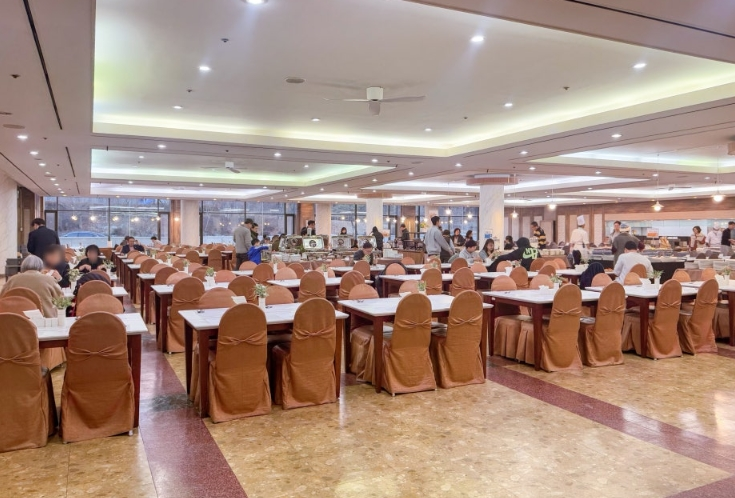 저는 오전 8시쯤 조식을 먹으러 갔는데, 자리가 충분히 넉넉해서 기다림 없이 편하게 앉을 수 있었어요. 전반적인 식사 공간의 분위기는 차분하고 깔끔했습니다.