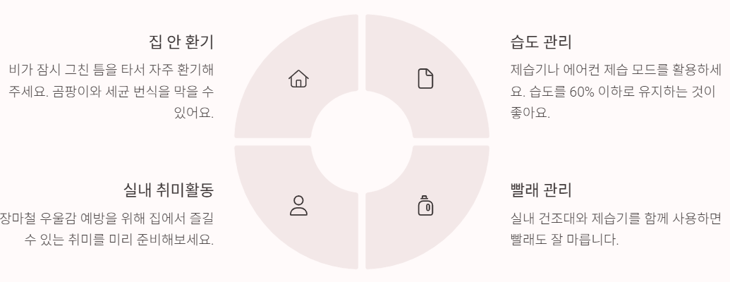 특히 장마철엔 집 안 공기가 눅눅해지기 쉬워서 빨래도 잘 마르지 않거든요. 작은 준비가 큰 차이를 만든다는 거, 잊지 마세요.