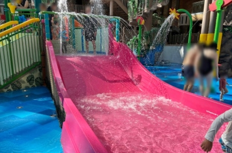 높이 올라가 한 바퀴 빙 돌며 내려오는 초록색 슬라이드는 스릴 만점. 아이들도 탈 수 있는 분홍·파란 슬라이드는 짧고 경사가 완만해서 영유아도 안전하게 이용 가능해요. 워터 플레이그라운드, 물대포, 워터 바스켓까지 다양한 장치들이 가득한 키즈존은 아이들이 에너지 맘껏 쏟을 수 있는 최고의 놀이터 같았어요.