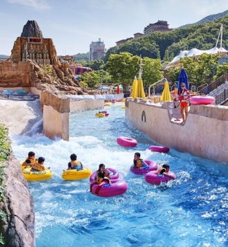 익스트림 리버는 도넛 튜브에 앉아 급류에 몸을 맡기고 부드럽게 흘러가는 코스로, 온 가족이 함께 즐기기 좋아요.