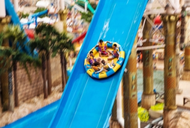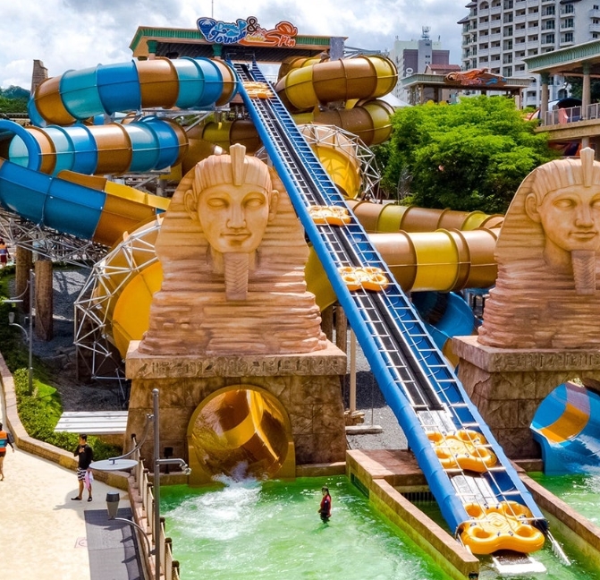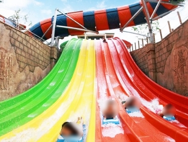 높이 18m, 길이 300m 이상의 대형 슬라이드 코스들이 즐비해 있어요.