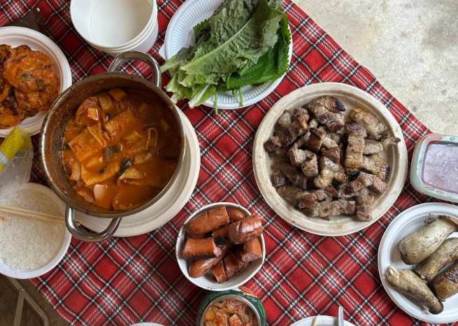 미리 준비해간 고기와 야채를 구워먹으며 즐기는 저녁 식사는 정말 최고였어요. 시설도 잘 정비되어 있어서 연기 걱정 없이 깔끔하게 먹을 수 있었답니다.